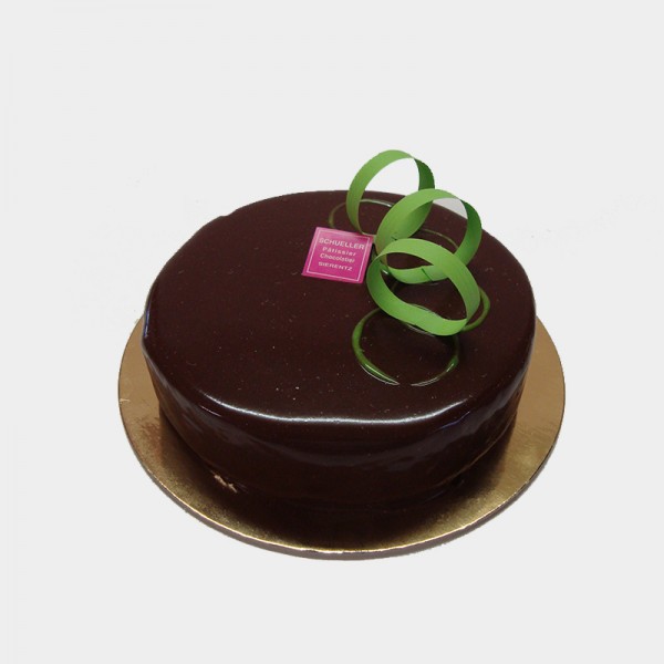 Biscuit chocolat, praliné craquant, coeur yuzu et argumes, mousse légère chocolat Jivara.